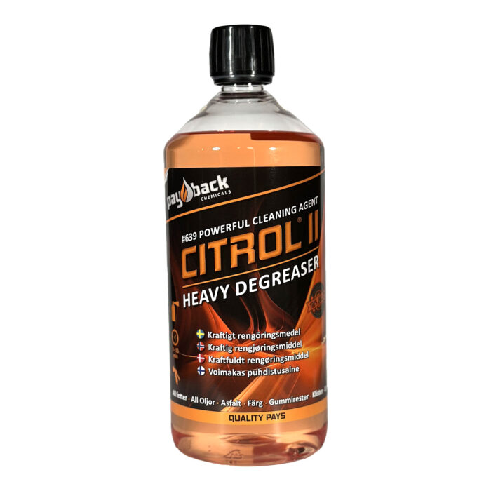 639 CITROL II är ett extremt effektivt rengöringsmedel med häpnadsväckande rengöringsförmåga. Löser enkelt lager av tjära, asfalt, fett, kocks, gummirester, tryckerifärger och klister.