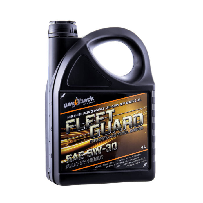 Fleet Guard är multifunktionella helsyntetiska motoroljor för hela lätta fordonsparken av moderna bensin- och dieselmotorer. Utveklad för partikelfilter (DPF) och katalysator. God funktion i äldre motorer. Högkvalitetsoljor med hög renhet, bränslereducerande egenskaper och tillförlitlighet med senaste additivtekniken med låga halt av sulfat aska, fosfor och svavel.