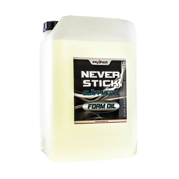 650 NEVER STICK är en mycket effektiv form- och släppolja med hög yttäthet. Baserat på renaste paraffinolja och tallfettsyra. Ger hög renhet och förhindrar att asfalt, betong, kalk, träflis, papper och sopor fäster på behandlade ytor.
