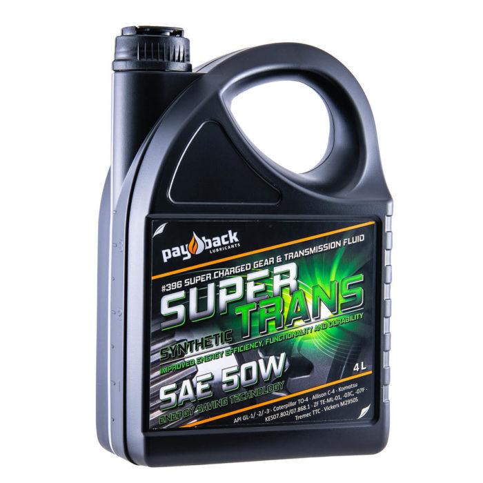 396 SUPER TRANS en syntetisk ”Super High Performance” transmissionsolja för extrema tryck, maximalt skydd, prestanda och livslängd i konvertrar, växellådor, differentialer, axlar med våta bromsar, hydrostater och hydraulik. En transmissionsolja med en prestandanivå långt över maskintillverkarnas rekommendation.