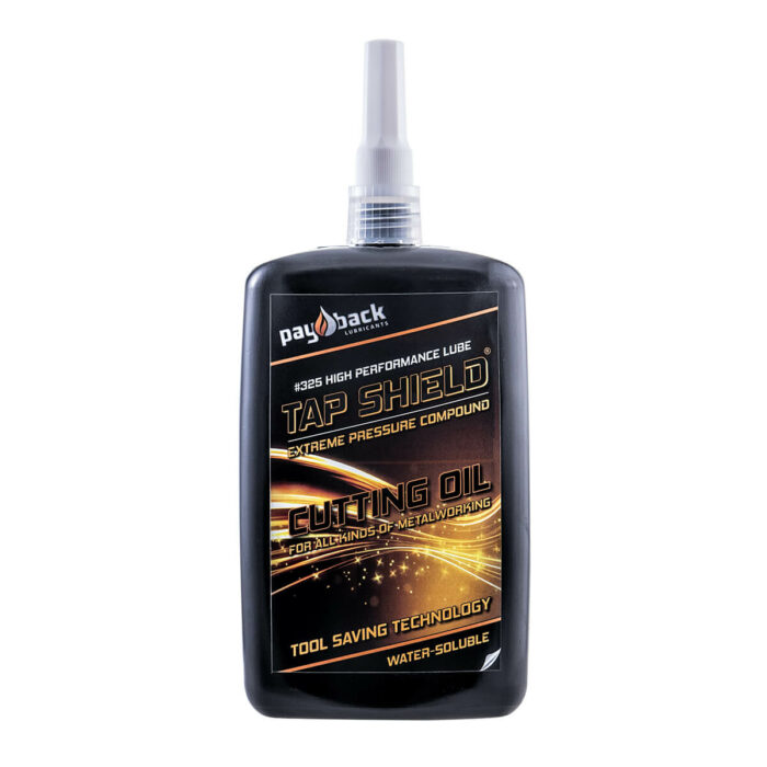 325 TAP SHIELD är ett extremt smörjmedel för tuff bearbetning. För borrning och gängning, kanske den bästa på marknaden enligt våra användare! Ytaktiva ämnen ger ultralåg friktion och extrema tryckegenskaper utan rökutveckling. Avlägsna enkelt med vatten.